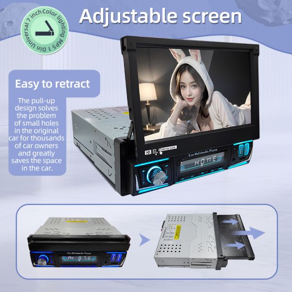 7 Inch Automatic Retractable Touch Screen 1 Din Display Car Stereo Single Din Mp5 Player For Car Navigation Autoradio